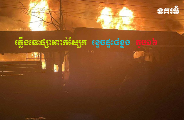 ភ្លើងឆេះផ្សារពាក់ស្បែក ខ្ទេ…/ចផ្ទះ៨ខ្នង តូប១៦
