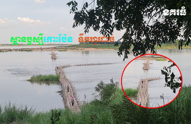 ខេត្តកំពង់ចាម ៖ ក្នុងរយៈពេលប៉ុន្មានថ្ងៃនេះ ទឹកទន្លេមេគង្គ បានហក់ឡើង ជាហេតុធ្វើឱ្យប្រដឹស ឬស្ពានឫស្សី សម្រាប់ឆ្លងពីត្រើយក្រុងកំពង់ចាម ទៅឆ្នេរខ្សាច់កោះប៉ែន នៅឃុំកោះមិត្ត ស្រុកកំពង់សៀម មានប្រវែងជាង ៧០០ម៉ែត្រ ត្រូវបានទឹកហូរបុកដាច់ត្រង់ផ្នែកកណ្តាល មិនអាចឱ្យមនុស្សដើរឆ្លងកាត់បានឡើយ។