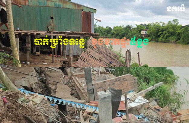 បាក់ច្រាំងទន្លេ ខូចខាតផ្ទះ៥ខ្នង