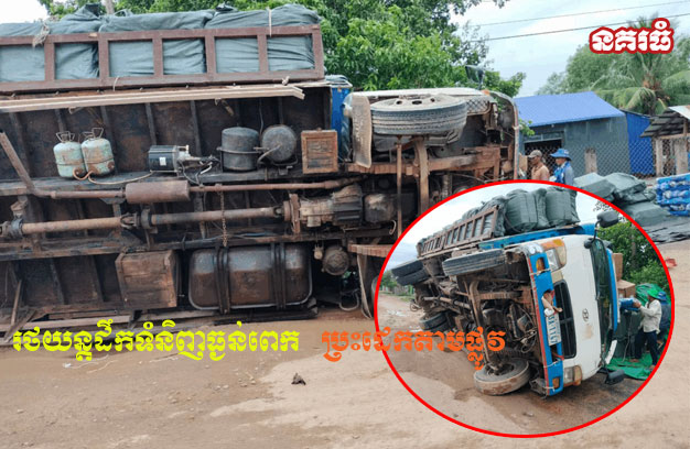 រថយន្តដឹកទំនិញធ្ងន់ពេក ប្រះដេកតាមផ្លូវ