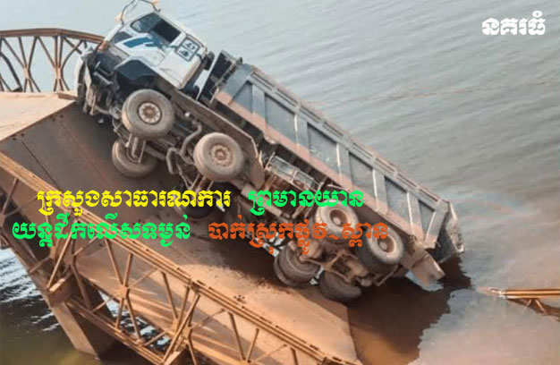 ភ្នំពេញ ៖ ក្រសួងសាធារណការនិងដឹកជញ្ជូន បានព្រមានថា អ្នកប្រើប្រាស់យានយន្តដឹកជញ្ជូនផ្ទុកលើសទម្ងន់ ធ្វើឱ្យស្រុតផ្លូវថ្នល់ បែកលូកាត់ទទឹងផ្លូវ ឬបាក់ស្ពាន គឺត្រូវប្រឈមនឹងការផ្តន្ទាទោស និងពិន័យជាប្រាក់។