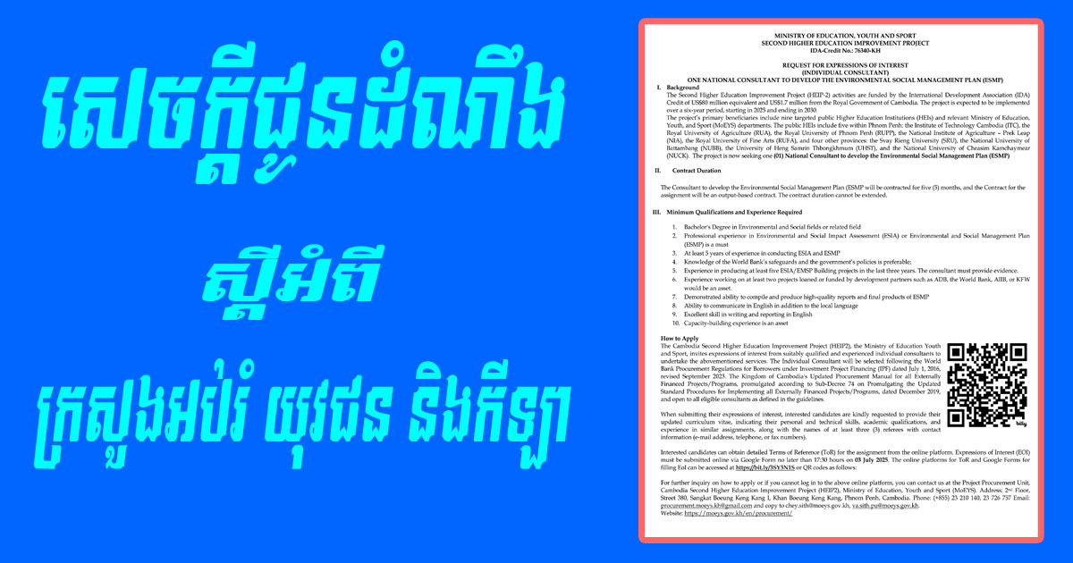 Homeព័ត៌មានជាតិសេចក្តីជូនដំណឹង ស្តីអំពីក្រសួងអប់រំ យុវជន និងកីឡា ព័ត៌មានជាតិ សេចក្តីជូនដំណឹង ស្តីអំពីក្រសួងអប់រំ យុវជន និងកីឡា By Davin June 20, 2025 0 0 Share FacebookTwitterPinterestWhatsApp RELATED ARTICLES ព័ត៌មានជាតិ សួស វីសា មិនមែនក្រទេ February 10, 2026 ព័ត៌មានជាតិ សេចក្តីជូនដំណឹង ស្តីអំពី ក្រសួងអប់រំ យុវជន និងកីឡា February 9, 2026 ព័ត៌មានជាតិ សេចក្តីជូនដំណឹង ស្តីអំពី ក្រសួងអប់រំ យុវជន និងកីឡា February 9, 2026