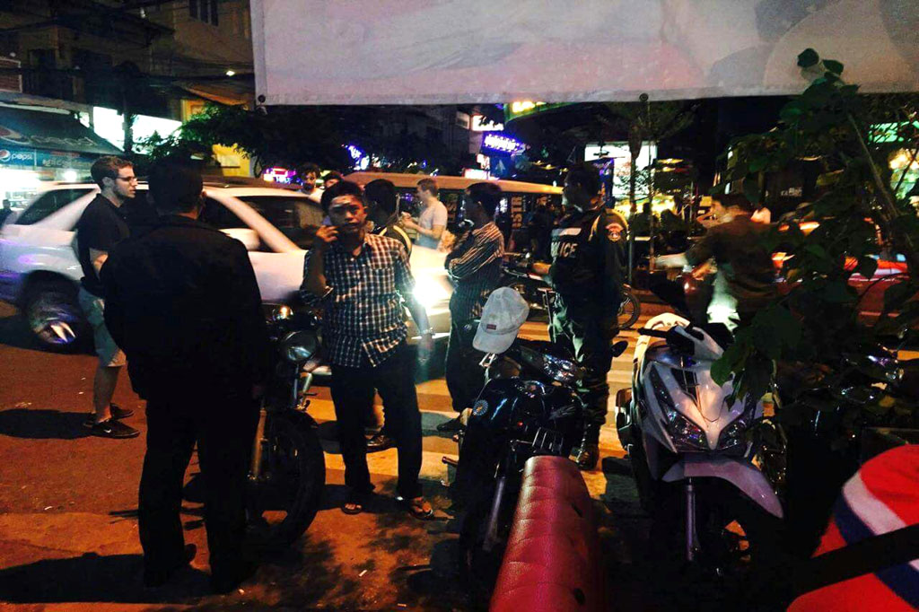 ប្រភពបន្ដថា មួយសន្ទុះក្រោយមកគេបាននាំបក្ខពួកជាប៉ូលិស មានទាំងឯកសណ្ឋាន និងជិះម៉ូតូណៃហត ស្លាកលេខ នគរបាល 1-1637 មកស្រែកឡូឡាពេញមុខហាង រកវាយម្ចាស់ហាង និងដកកាំភ្លើងម៉ាក AK ពីបក្ខពួកបម្រុងបាញ់រះមកលើភ្ញៀវ ទេសចរណ៍នៅបរិវេណខាងក្រៅហាង ថែមទាំងស្រែកថា «អញមកពីអគ្គ… ហ្ហែងឆាប់ហៅភ្ញៀវមកលត់ជង្គង់សុំទោសអញភ្លាម បើមិនចឹងទេអញបាញ់ងាប់ទាំងអស់ ហាងហ្ហែងនឹងបិតឆាប់ៗ…» ។ ភ្លាមនោះ ម្ចាស់ហាងខាងលើក៏ស្ទុះទៅសម្រួល និងនិយាយអង្វរ ជនពាក់អាវក្រឡាការ៉ូ ម្នាក់មិនស្គាល់អត្ដសញ្ញាណ តែជននោះមិនស្តាប់ទេ ហើយថែមទាំងរកវាយទៀតផង ធ្វើឲ្យផ្អើលមនុស្សចោម រោមមើលកាន់តែច្រើន ធ្វើឲ្យជនទំនើងទាំងនោះបាននាំគ្នាជិះម៉ូតូចេញទៅបាត់ ដោយបន្សល់ពាក្យគម្រាមថា «ចាំតិចទៀតអញមក, ប្រយ័ត្នខ្លួនពួកហ្ហែង..» ។