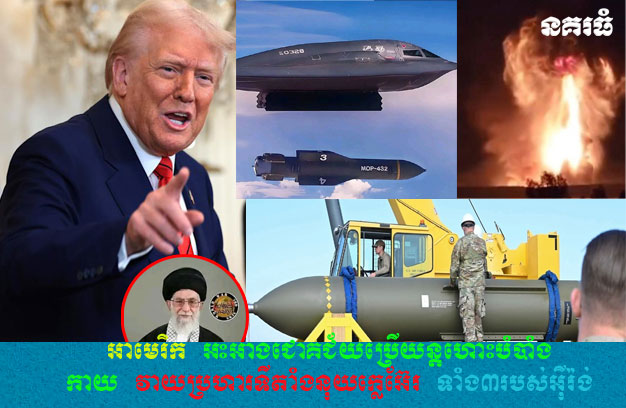 សហរដ្ឋអាមេរិក ៖ យោធាអាមេរិក បានចេញផ្សាយពេលវេលានៃការវាយប្រហាររបស់ខ្លួន ក្នុងប្រតិបត្តិការ «Midnight Hammer» ទៅលើទីតាំងនុយក្លេអ៊ែរ របស់អ៊ីរ៉ង់ ចំនួន៣ រួមមាន ហ្វ័រដូវ (Fordow), ណាតាន់ស៍ (Natanz) និងអ៊ីសហ្វាហាន (Esfahan) ដោយនិយាយថា ខ្លួនបានប្រើប្រាស់គ្រាប់បែក GBU-57 ចំនួន ១៤ គ្រាប់ ហើយយន្តហោះទម្លាក់គ្រាប់បែកបំបាំងកាយ B-2 ដែលមានរហស្សនាមថា «ខ្មោចលើអាកាស» បានហោះចេញពីប្រទេសអ៊ីរ៉ង់ ដោយសុវត្ថិភាព មិនមានការប៉ះទង្គិចណាមួយឡើយ។