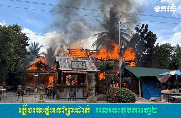 ខេត្តសៀមរាប ៖ ផ្ទះ ១ខ្នង ត្រូវបានអគ្គិភ័យឆាបឆេះបំផ្លាញអស់ទាំងស្រុង និងថែមទាំងរាលឆេះទៅដល់តូបកាហ្វេ ចំនួន២ ដែលនៅជាប់នោះថែមទៀត បណ្តាលឱ្យខូចខាតសម្ភារៈ និងទ្រព្យសម្បត្តិមួយចំនួនធំ ហើយភ្លាមនោះ មានសមត្ថកិច្ចជំនាញ បញ្ជូនរថយន្តពន្លត់អគ្គិភ័យ ចុះជួយអន្តរាគមន៍ ដោយប្រើប្រាស់ទឹកបាញ់ពន្លត់ អស់ចំនួន៤ឡាន ទើបអាចគ្រប់គ្រងស្ថានការណ៍បានទាំងស្រុង។