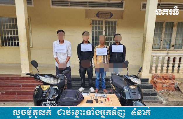 យោងតាមរបាយការណ៍ របស់ការិយាល័យព្រហ្មទណ្ឌកម្រិតស្រាល នៃស្នងការដ្ឋាននគរបាលខេត្តបាត់ដំបង បានឱ្យដឹងថា ជនដៃដល់ ចំនួន២នាក់ (ឈ្មោះផល គឹមហ៊ាត និងឈ្មោះឆេង សម្បត្តិ) ត្រូវបានកម្លាំងការិ យាល័យជំនាញ និងកម្លាំងអធិការក្រុងបាត់ដំបង ឃាត់ខ្លួនបាន ជាបន្តបន្ទាប់ កាលពីថ្ងៃទី១៨ និងថ្ងៃទី១៩ ខែមិថុនា ឆ្នាំ២០២៥ ក្រោយជនដៃដល់បានប្រព្រឹត្តបទល្មើស។ រីឯជនសង្ស័យ ២នាក់ទៀត (ឈ្មោះគឿ សុខជា និងឈ្មោះចាន់ ដារ៉ា) ដែលទទួលទិញផលចោរកម្ម ត្រូវបានកម្លាំងការិយាល័យជំនាញនៃស្នងការដ្ឋាននគរបាលខេត្តបាត់ដំបង ធ្វើការស្រាវជ្រាវ តាមចាប់ខ្លួនដល់ទឹកដីក្រុងឧដុង្គម៉ែជ័យ ខេត្តកំពង់ស្ពឺ កាលពីថ្ងៃទី២០ ខែមិថុនា ឆ្នាំ២០២៥ ដែលជាកន្លែងជនសង្ស័យទាំង២នាក់ ណាត់ជួបទិញម៉ូតូរបស់ជនដៃដល់ដែលលួចបាន ដោយមានកិច្ចសហការពីកម្លាំងជំនាញនៃស្នងការខេត្តកំពង់ស្ពឺ ផង។