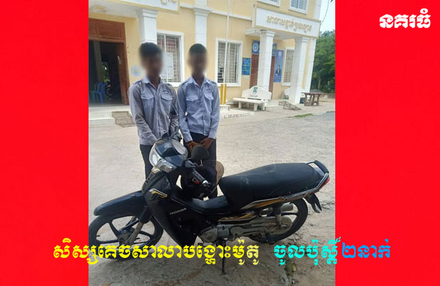 ភ្នំពេញ ៖ ក្មេងប្រុសជាសិស្សសាលា ចំនួន២នាក់ បានគេចម៉ោងរៀន នាំគ្នាបង្ហោះម៉ូតូតាមផ្លូវសាធារណៈ ត្រូវបានសមត្ថកិច្ចឃាត់ខ្លួន និងដកហូតម៉ូតូទុក រយៈពេល៣ខែ។