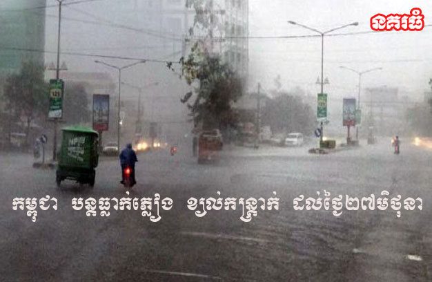 កម្ពុជា បន្តធ្លាក់ភ្លៀង ខ្យល់កន្ត្រាក់ ដល់ថ្ងៃ២៧មិថុនា