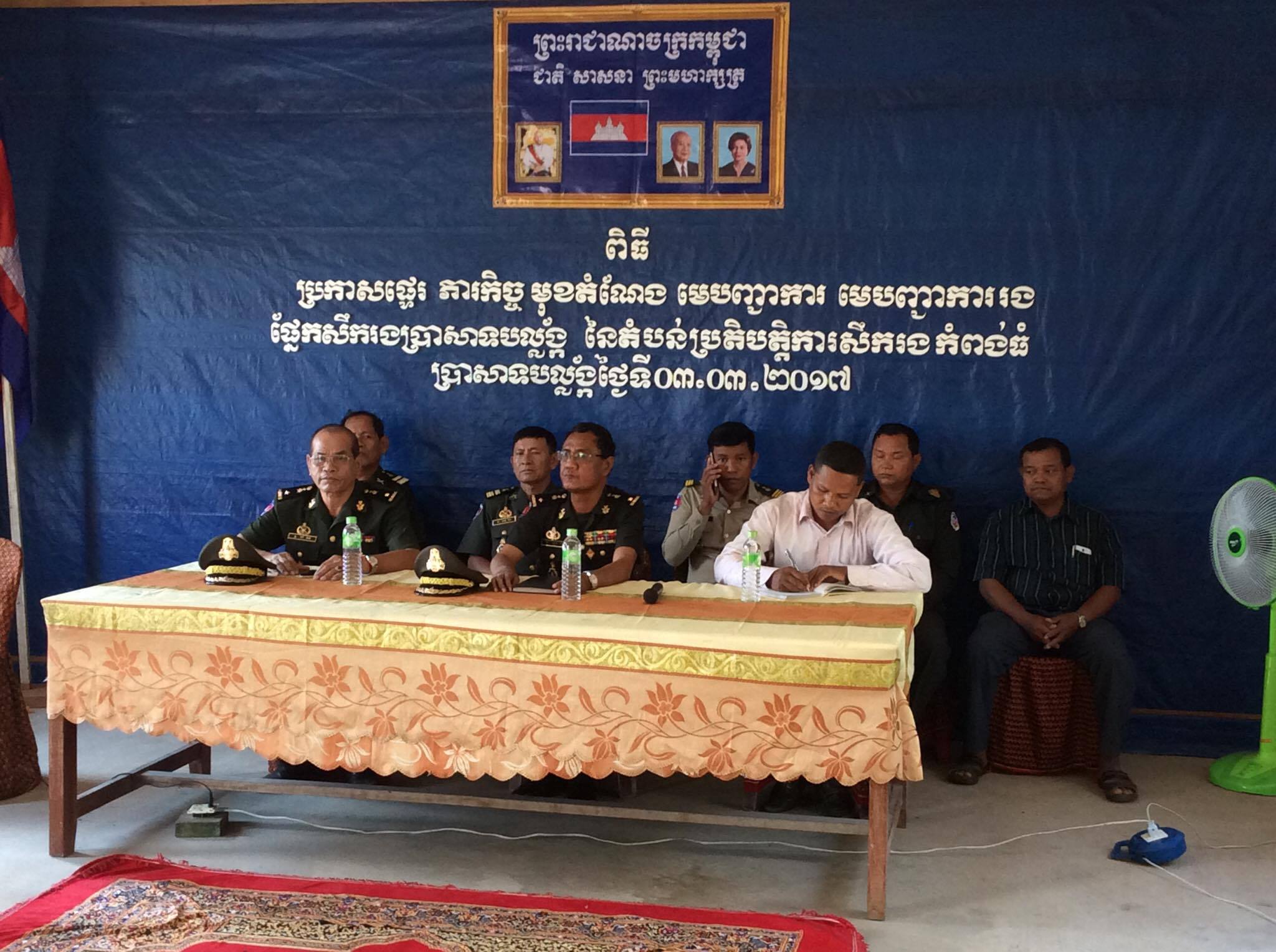 កំពង់ធំ: នៅទីបញ្ជាការតំបន់ប្រតិបត្តិការស្រុកប្រាសាទបល្ល័ង្គនារសៀលថ្ងៃសុក្រទី៣ខែមិនាឆ្នាំ២០១៧នេះមានរៀបចំ ពិធីប្រកាសផ្ទេរមុខតំណែងមេបញ្ជាការ មេបញ្ជាការរងស្រុកប្រាសាទបល្ល័ង្គក្រោមអធិបតីភាពដ៏ខ្ពង់ខ្ពស់លោកឧត្តម សេនីយ៍ ត្រីញូង ធីមេបញ្ជាការរងនាយសេនាធិការ តំបន់ប្រតិបត្តិការសឹករងខេត្ត តំណាងឯកឧត្តមសោម ស៊ុន មេបញ្ជា ការតំបន់ប្រតិ បត្តិ ការ សឹករងខេត្តកំពង់ធំ និងលោកគង់ សំអាតអភិបាលរងស្រុកប្រាសាទបល្ល័ងនិងមន្ត្រី រាជការ ចំណុះ គណះ ឯកភាព ស្រុក ទាំងអស់។