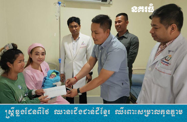 ខេត្តបន្ទាយមានជ័យ ៖ ស្ត្រីម្នាក់ ជាពលការិនីខ្មែរ មានផ្ទៃពោះ ទើបនឹងត្រឡប់មកពីប្រទេសថៃ ចូលមកដល់ទឹកដីកំណើតវិញ តាមច្រកព្រំដែនប៉ោយប៉ែត គ្រាន់តែឈានជើងជាន់ដីខ្មែរភ្លាម ស្រាប់តែឈឺពោះសម្រាលកូន ត្រូវបានអាជ្ញាធរនិងមន្ត្រីពាក់ព័ន្ធ បញ្ជូនទៅមន្ទីរពេទ្យបង្អែកប៉ោយប៉ែត សម្រាល់បានកូនប្រុសម្នាក់ ទម្ងន់ជាង ៣គីឡូក្រាម ដោយសុវត្ថិភាព កាលពីព្រឹកថ្ងៃទី២ ខែកក្កដា ឆ្នាំ២០២៥។
