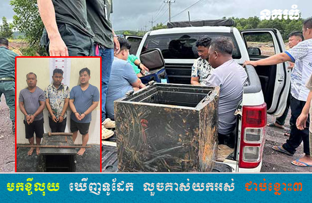 ខេត្តកោះកុង ៖ ជនសង្ស័យម្នាក់ បានជិះម៉ូតូបំណងទៅរកខ្ចីលុយស្ត្រីម្នាក់ លុះទៅដល់ ស្ត្រីរូបនោះមិននៅផ្ទះ និងថែមទាំងភ្លេចចាក់សោផ្ទះ និងសោបន្ទប់ ទើបជនសង្ស័យបែកគំនិតចូលទៅក្នុងផ្ទះ ឃើញទូដែក ក៏ទូរស័ព្ទហៅបក្ខពួក ២នាក់ យករ៉ឺម៉កម៉ូតូ ១គ្រឿង មកដឹកទូដែកជនរងគ្រោះ យកទៅគាស់ប្រមូលបានលុយនិងគ្រឿង អលង្ការ ចែកគ្នា លុះព្រឹកស្អែកឡើង ត្រូវ សមត្ថកិច្ចជំនាញ ស្រាវជ្រាវឃាត់ខ្លួនជនសង្ស័យទាំង៣នាក់ នាំយកមកចាត់ការតាមច្បាប់។
