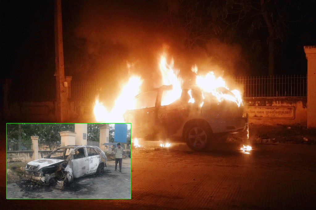 ភ្នំពេញ ៖ រថយន្តឡិចស៊ីសRX 330មួយគ្រឿង បើកបរដោយជនជាតិចិនបើកបុករបាំងថ្មការដ្ឋានសាង សង់ស្ពានអាកាសថ្មើរជើងតាមបណ្តោយផ្លូវជាតិលេខបណ្តាលឲ្យខូចខាតយ៉ាងដំណំត្រូវ សមត្ថកិច្ចប្រាប់ឲ្យម្ចាស់អូសយកទៅជួសជុលមិនទាន់បានជួសជុលផងស្រាប់តែរថយន្ត ឆ្លងចរន្តបង្កឲ្យឆាបឆេះសន្ធោសន្ធៅនៅសល់តែគ្រោងឆ្អឹងបង្កឲ្យមានការភ្ញាក់ផ្អើលកាលពីវេលាម៉ោង១និង៣០នាទីរំលងអាធ្រាតឈានចូលថ្ងៃទី៨ មិនា ២០១៧ នៅតាមបណ្តោយផ្លូវជាតិ៤មុខសាលាបឋមសិក្សាជម្ពូវ័ន ចំណុចការរដ្ធានស្ថាបនាពង្រីកផ្លូវនិងសាងសង់ស្ពានអាកាសថ្មើជើងស្ថិតក្នុងភូមិជម្ពូវ័ន សង្កាត់ចោមចៅ ខណ្ឌពោធិ៍សែនជ័យ ។