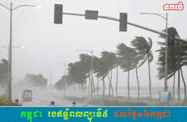 កម្ពុជា រងឥទ្ធិពលព្យុះទី៥ ដល់ថ្ងៃ១៦កក្កដា