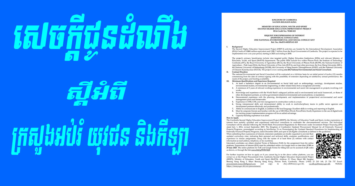 Homeព័ត៌មានជាតិសេចក្តីជូនដំណឹង ស្តីអំពីក្រសួងអប់រំ យុវជន និងកីឡា ព័ត៌មានជាតិ សេចក្តីជូនដំណឹង ស្តីអំពីក្រសួងអប់រំ យុវជន និងកីឡា By Davin July 16, 2025 0 0 Share FacebookTwitterPinterestWhatsApp RELATED ARTICLES ព័ត៌មានជាតិ សេចក្តីជូនដំណឹង ស្តីអំពី ក្រសួងអប់រំ យុវជន និងកីឡា February 9, 2026 ព័ត៌មានជាតិ សេចក្តីជូនដំណឹង ស្តីអំពី ក្រសួងអប់រំ យុវជន និងកីឡា February 9, 2026 ព័ត៌មានជាតិ ប្រាក់ខែយោធិន អ្នកវិភាគថា គួរធ្វើទំនើបកម្ម បើកផ្តល់តាមប្រព័ន្ធធនាគារ February 7, 2026