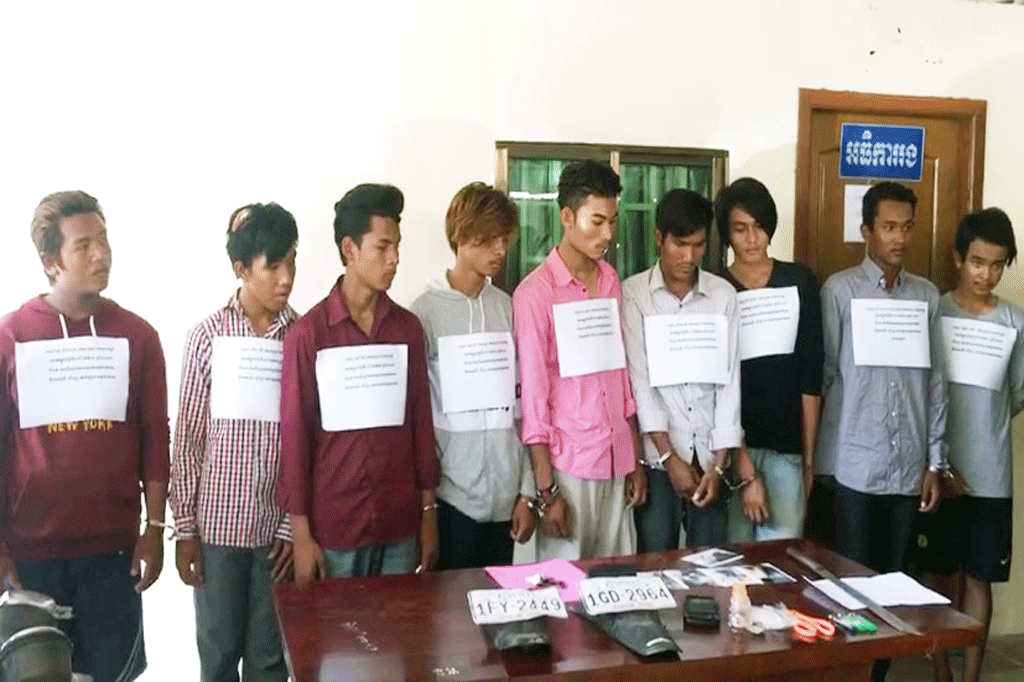 ភ្នំពេញ ៖ នៅព្រឹកថ្ងៃទី០៨ ខែមីនា ឆ្នាំ២០១៧នេះ នៅអធិការដ្ឋាននគរបាលខណ្ឌពោធិសែនជ័យ ក្រោមការសម្របសម្រួលពីលោកព្រះរាជអាជ្ញារងអមសាលាដំបូងរាជធានីភ្នំពេញ បានធ្វើសន្និសីទកាសែតបង្ហាញមុខសញ្ញា ជនសង្ស័យក្នុងករណី វាយ កាប់ ប្លន់ យកទ្រព្យសម្បត្តិតាមទីសាធារណៈ បង្កអសន្តិដុខក្នុងមូលដ្ឋាន ហើយត្រូវបានកម្លាំងនគរបាលខណ្ឌពោធិសែនជ័យ កម្លាំងតាមបណ្តាបុ៉ស្តិ៍រដ្ឋបាល ស្រាវជ្រាវ តាមបង្ក្រាបចាប់ខ្លួនបានជាបន្តបន្ទាប់កន្លងមកថ្មីៗនេះ សរុបចំនួន៩នាក់ ក្នុងនោះមានម្នាក់ជាមេក្លោង បងធំប្រចាំក្រុមប្រព្រឹត្តល្មើសផងដែរ ។