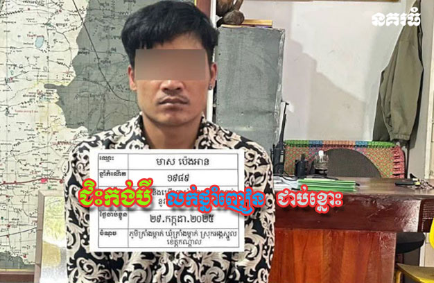 ការឃាត់ខ្លួននេះ ធ្វើឡើងកាលពីវេលាម៉ោង ៥និង០៥នាទីល្ងាច ថ្ងៃទី២៩ ខែកក្កដា ឆ្នាំ២០២៥ នៅចំណុចភូមិក្រាំងម្កាក់ ឃុំក្រាំងម្កាក់ ស្រុកអង្គស្នួល។