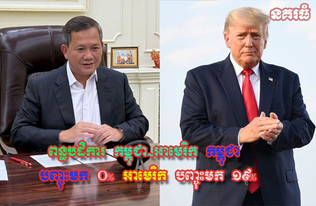 ពន្ធបដិការ កម្ពុជា-អាមេរិក កម្ពុជា បញ្ចុះមក ០% អាមេរិក បញ្ចុះមក ១៩%