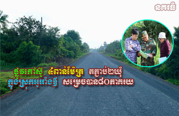 ផ្លូវកៅស៊ូ ៤ពាន់ម៉ែត្រ តភ្ជាប់២ឃុំ ក្នុងស្រុកអូររាំងឪ សម្រេចបាន៨០ភាគរយ