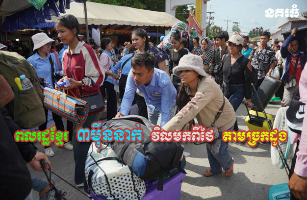 ខេត្តបាត់ដំបង ៖ ប្រជាពលរដ្ឋខ្មែរ ដែលជាពលករចំណាកស្រុក ប្រមាណ ៣ម៉ឺននាក់ បានវិលត្រឡប់ចូលប្រទេសកម្ពុជា នៅថ្ងៃទី៣ ខែសីហា ឆ្នាំ២០២៥ តាមច្រកទ្វារអន្តរជាតិ ដូង ស្រុកកំរៀង ខេត្តបាត់ដំបង ដោយមានការរង់ចាំទទួលស្វាគមន៍យ៉ាងកក់ក្តៅពីអាជ្ញាធរពាក់ព័ន្ធ និងដឹកជញ្ជូនពួកគាត់រហូតដល់លំនៅដ្ឋានវិញ។ក្នុងឱកាសនោះ លោកសុខ លូ អភិបាលខេត្តបាត់ដំបង បានអញ្ជើញសំណេះសំណាល សួរសុខទុក្ខ និងផ្តល់អាហារសម្រន់ជូនដល់ពលករផងដែរ។ ពលករខ្មែរដែល បានមកដល់ស្រុកកំណើតវិញ អំពាវនាវដល់បងប្អូនប្រជាពលរដ្ឋ និងពលករខ្មែរនៅប្រទេសថៃ សូមវិលត្រឡប់មកមាតុប្រទេសវិញ ដើម្បីសុវត្ថិភាព។