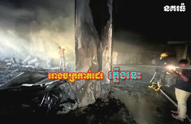ខេត្តកំពង់ស្ពឺ ៖ រោងចក្រកាត់ដេរ ១កន្លែង ត្រូវបានអគ្គិភ័យឆាបឆេះយ៉ាងសន្ធោសន្ធៅ ដោយមូលហេតុបណ្តាលមកពីការឆ្លងចរន្តអគ្គិសនី បង្កឱ្យមានការភ្ញាក់ផ្អើលកម្មករ និងសមត្ថកិច្ច បញ្ជូនរថយន្តជួយពន្លត់អគ្គិភ័យ ចេញជួយអន្តរាគន៍បាញ់ទឹកពន្លត់ភ្លាមៗ។