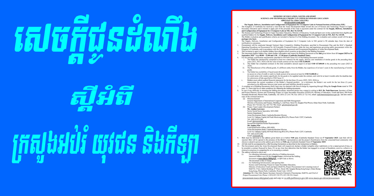 Homeព័ត៌មានជាតិសេចក្តីជូនដំណឹង ស្តីអំពីក្រសួងអប់រំ យុវជន និងកីឡា ព័ត៌មានជាតិ សេចក្តីជូនដំណឹង ស្តីអំពីក្រសួងអប់រំ យុវជន និងកីឡា By Davin August 13, 2025 0 0 Share FacebookTwitterPinterestWhatsApp RELATED ARTICLES ព័ត៌មានជាតិ សេចក្តីជូនដំណឹង ស្តីអំពី ក្រសួងអប់រំ យុវជន និងកីឡា February 9, 2026 ព័ត៌មានជាតិ សេចក្តីជូនដំណឹង ស្តីអំពី ក្រសួងអប់រំ យុវជន និងកីឡា February 9, 2026 ព័ត៌មានជាតិ ប្រាក់ខែយោធិន អ្នកវិភាគថា គួរធ្វើទំនើបកម្ម បើកផ្តល់តាមប្រព័ន្ធធនាគារ February 7, 2026