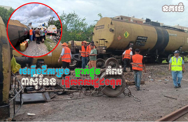 រថភ្លើងដឹកប្រេង ធ្លាក់ផ្លូវ កំពប់៣ស៊ីទែន ផ្អើលពលរដ្ឋដងទុក