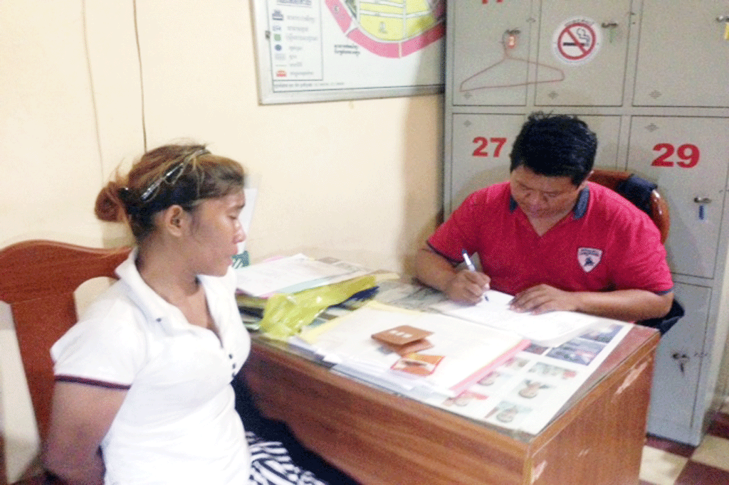 តាមសម្ដីលោកមេប៉ុស្តិបានអោយដឹកថា មុនពេលកើតហេតុ កម្លាំងសមត្ថកិច្ចប៉ុស្តិ៍ផ្សារដើមថ្កូវបានធ្វើការល្បាតក្នុងមូលដ្ឋាន ដើម្បីទប់ស្កាត់បទល្មើសផ្សេងៗនិងការពារសន្តិសុខជូនប្រជាពលរដ្ឋ ស្របពេលនោះក៏ប្រទះឃើញនារីម្នាក់កំពុង ឈររេរា នៅម្តុំដីឡូអត់លេខដោយមានការសង្ស័យកម្លាំងសមត្ថកិច្ចបានសុំធ្វើការត្រួតពិនិត្យនិងឆែកឆេរ ស្រាប់តែរកឃើញថ្នាំញៀនប្រភេទក្រាមពណ៌សរថ្លាចំនួន៣កញ្ចប់តូច ដែលជនសង្ស័យបានលាក់ទុកនៅក្នុងថង់មាស ឃើញដូច្នេះកម្លាំងបាននាំខ្លួនជនសង្ស័យព្រមទាំងវត្ថុតាងយកទៅធ្វើការសាកសួរនៅប៉ុស្ត៍នគរបាលផ្សារដើមថ្កូវ ។