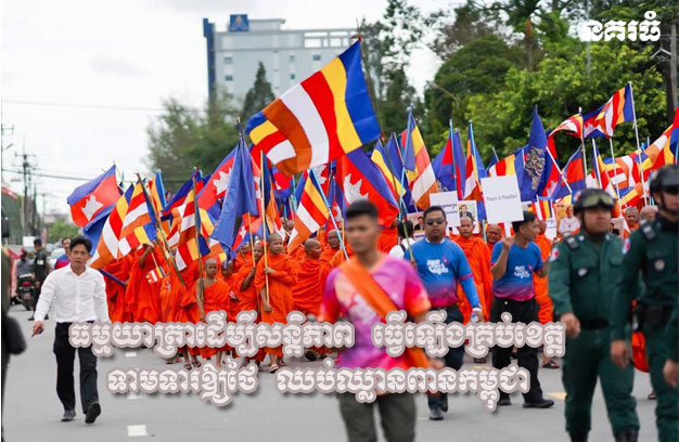 ព្រះសង្ឃ មន្ត្រីរាជការ លោកគ្រូអ្នកគ្រូ សិស្សានុសិស្ស និងប្រជាពលរដ្ឋ នៅតាមរាជធានី-ខេត្ត បានបន្តជួបជុំធ្វើធម្មយាត្រាថ្មើជើង “ដើម្បីសន្តិភាព” ធ្វើឡើងក្នុងស្មារតីស្នេហាជាតិ ដើម្បីបង្ហាញពីបេះដូងខ្មែរតែមួយ ដែលស្រឡាញ់សន្តិភាព ស្រឡាញ់ជាតិមាតុភូមិ និងទឹកដីរបស់ខ្លួន ព្រមជាមួយគ្នានេះ ក៏ជាការបង្ហាញទៅកាន់សហ គមន៍អន្តរជាតិ ឱ្យបានដឹងថា ប្រជាជនកម្ពុជា ត្រូវការសន្តិភាព មិនត្រូវការសង្គ្រាម ការឈ្លានពាន ឬជម្លោះណាមួយឡើយ។
