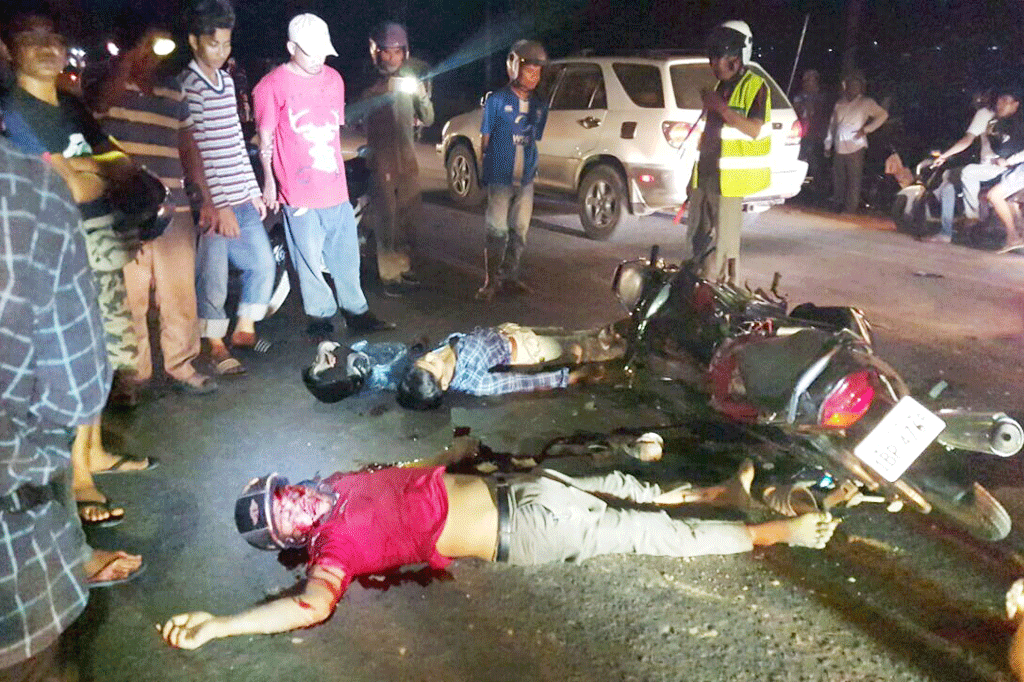 ភ្នំពេញ ៖ ម៉ូតូសេ១២៥ចំនួន២គ្រឿង ខណៈដែលមានមួយគ្រឿងបើកបរវ៉ាជែងខ្វះការប្រុងប្រយ័ត្នលឿនជ្រុលទៅបុកមូ៉តូមួយគ្រឿងទៀតនៅបំណែកផ្លូវម្ខាងដែលបើកច្រាសទិសគ្នា បណ្តាលឲ្យមនុស្ស២នាក់ស្លាប់ភ្លាមៗនៅនឹងកន្លែង ចំណែកម្នាក់ទៀតរងរបួសធ្ងន់ធ្ងរ។ កាលពីវេលាម៉ោង១៨និង៤០នាទីយប់ថ្ងៃទី១១ ខែមិនា ឆ្នាំ២០១៧ ស្ថិតនៅលើកំណាត់ផ្លូវជាតិលេខ៤ ខាងលិចសាលាក្តីខ្មែរក្រហម ត្រង់ចំណុចភូមិត្រពាំងទួល សង្កាត់កំបូល ខណ្ឌពោធិសេនជ័យ ។