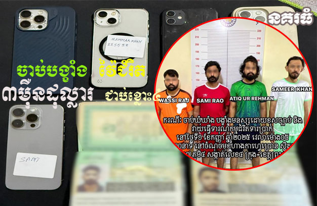 នៅក្នុងប្រតិបត្តិការខាងលើ សមត្ថកិច្ចបានដកហូតវត្ថុតាង រួមមាន ទូរស័ព្ទ ចំនួន៥គ្រឿង (១-ម៉ាក iPhone 15Pro Max ពណ៌ស ២-ម៉ាក iPhone 15Pro Max ពណ៌ប្រផេះ ៣-ម៉ាក iPhone 15Pro Max ពណ៌ស ៤-ម៉ាក iPhone 13 ពណ៌ស ៥-ម៉ាក iPhone 11 ពណ៌ខ្មៅ) និងលិខិតឆ្លងដែន ចំនួន២ក្បាល។