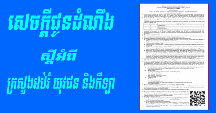 សេចក្តីជូនដំណឹង ស្តីអំពីក្រសួងអប់រំ យុវជន និងកីឡា