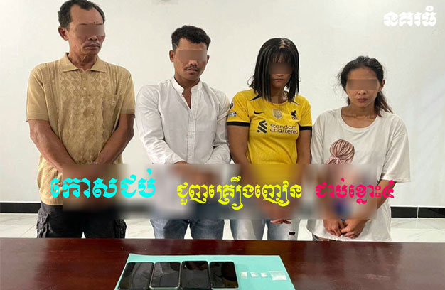 ក្រុមជនសង្ស័យទាំង៤នាក់ ដែលត្រូវបានសមត្ថកិច្ចចាប់ឃាត់ខ្លួន រួមមាន ទី១-ឈ្មោះប្រាជ្ញ វណ្ណស៊ី ភេទប្រុស អាយុ២៩ឆ្នាំ រស់នៅភូមិពោធិ៍មាស ឃុំត្រពាំងជោរ ស្រុកឱរ៉ាល់។ ទី២-ឈ្មោះម៉េវ សុផន ហៅកុយ ភេទប្រុស អាយុ៦៥ឆ្នាំ រស់នៅភូមិច្រកទៀក ឃុំត្រពាំងជោរ ស្រុកឱរ៉ាល់ (ជាម្ចាស់ផ្ទះ និងជាអ្នកផ្តល់ទីតាំង)។ ទី៣-ឈ្មោះអ៊ុត ស្រីអូន ហៅស្រីលក្ខ ភេទស្រី អាយុ៣៥ឆ្នាំ រស់នៅភូមិច្រកទៀក ឃុំត្រពាំងជោរ ស្រុកឱរ៉ាល់ និងទី៤-ឈ្មោះសោម ចន្តា ភេទស្រី អាយុ៣៥ឆ្នាំ រស់នៅភូមិច្រកទៀក ឃុំត្រពាំងជោរ ស្រុកឱរ៉ាល់។