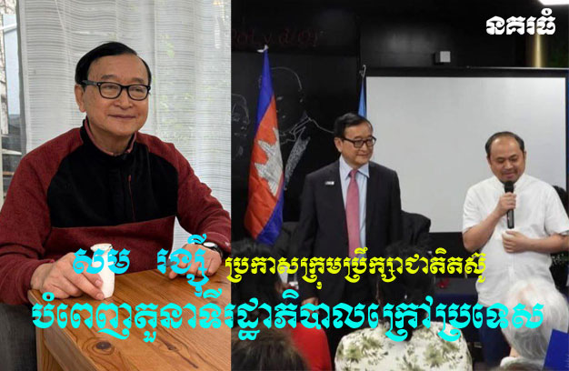 Homeនយោបាយសម រង្ស៉ី ប្រកាសក្រុមប្រឹក្សាជាតិតស៊ូ បំពេញតួនាទីរដ្ឋាភិបាលក្រៅប្រទេស