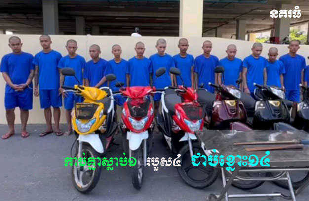 លោកវរសេនីយ៍ឯក ម៉ម សាវន នាយការិយាល័យ នគរបាលព្រហ្មទណ្ឌកម្រិតស្រាល នៃស្នងការនគរបាលរាជធានីភ្នំពេញ បានឱ្យដឹងថា ដោយអនុវត្តតាមអនុសាសន៍ដឹកនាំដ៏ខ្ពង់ខ្ពស់របស់នាយឧត្តមសេនីយ៍ ស ថេត អគ្គស្នងការនគរបាលជាតិ និងអនុវត្តតាមបទបញ្ជាផ្ទាល់ពី លោកឧត្តមសេនីយ៍ឯក ជួន ណារិន្ទ អគ្គស្នងការរង និងជាស្នងការនគរបាលរាជធានីភ្នំពេញ និងបញ្ជាផ្ទាល់ដោយឧត្តសេនីយ៍ត្រី ប៊ុត សត្យា ស្នងការរងទទួលផែន ការងារព្រហ្មទណ្ឌ កម្លាំងការិយាល័យនគរបាលព្រហ្មទណ្ឌកម្រិតស្រាល បានសហការជាមួយអធិការនគរ បាលខណ្ឌមានជ័យ ធ្វើការស្រាវជ្រាវឃាត់ជនសង្ស័យ ចំនួន១៤នាក់ ជាក្រុមក្មេងទំនើង ឈ្មោះក្រុមចាក់អង្រែ (CA) ក្រុមផ្សារក្រមួន និងក្រុមតាខ្មៅ នៅថ្ងៃទី៩ និងថ្ងៃទី១០ ខែកញ្ញា ឆ្នាំ២០២៥។ នៅក្នុងការឃាត់ខ្លួនក្មេងទំ នើងនេះ សមត្ថកិច្ចដកហូតវត្ថុតាង ម៉ូតូ ចំនួន៧គ្រឿង និងដាវកែច្នៃ ចំនួន២ដើម។