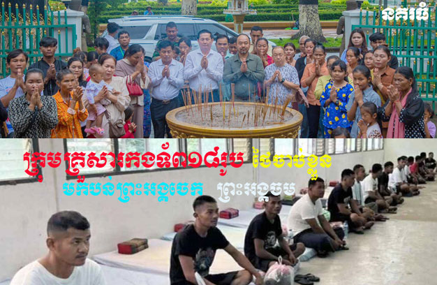 ខេត្តសៀមរាប ៖ ក្រុមគ្រួសារវីរកងទ័ពកម្ពុជា ១៨រូប ដែលទាហានថៃ ចាប់ខ្លួនក្រោយមានបទឈប់បាញ់ ដែលមកដល់ពេលនេះនៅតែមិនទាន់ត្រូវបានដោះលែងវិញនោះ បានមកបន់ព្រះអង្គចេក ព្រះអង្គចម សុំឲ្យវីរកងទ័ពទាំង១៨រូប បានសុខសុវត្ថិភាព និងឆាប់បានត្រឡប់មកមាតុភូមិវិញ។