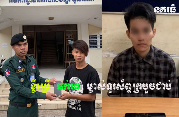 ភ្នំពេញៈ ជនសង្ស័យម្នាក់ ជាមនុស្សស្រីតែងខ្លួនជាប្រុស បានដើរទៅសុំខ្ចីទូរស័ព្ទពីយុវជនម្នាក់ដែលជាអ្នក ស្គាល់គ្នា ដោយប្រាប់ថា សុំខ្ចីខលមួយភ្លែត លុះជនរងគ្រោះហុចទូរស័ព្ទឱ្យ ស្រាប់តែជនសង្ស័យបានស្ទុះរត់គេច តែរត់មិនរួច ដោយត្រូវម្ចាស់ទូរស័ព្ទរត់ដេញចាប់ក្របួច ជាប់ រួចប្រគល់ឱ្យសមត្ថកិច្ច នាំយកទៅចាត់ការតាមច្បាប់។