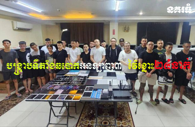 ភ្នំពេញ ៖ កម្លាំងគណៈបញ្ជាការ ដឹកនាំស្រាវជ្រាវស៊ើបអង្កេត និងបង្ក្រាបបទល្មើសគ្រប់ប្រភេទ សហការជា មួយកម្លាំងជំនាញអគ្គស្នងការដ្ឋាននគរបាលជាតិ នៃក្រសួងមហាផ្ទៃ បានបើកប្រតិបត្តិការចុះឡោមព័ទ្ធ បង្ក្រាបទីតាំងលួចលាក់ប្រព្រឹត្តបទល្មើសឆបោកតាមប្រព័ន្ធបច្ចេកវិទ្យា (Online Scam) ចំនួន៣ទីតាំងផ្សេងគ្នា ក្នុងភូមិសាស្ត្ររាជធានីភ្នំពេញ ដោយឃាត់ខ្លួនជនបរទេស សរុបចំនួន២៤នាក់។