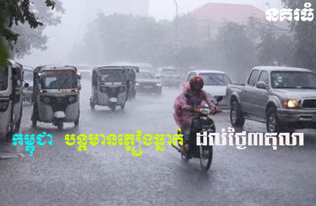 ភ្នំពេញ ៖ ក្រសួងធនធានទឹកនិងឧតុនិយម នៅព្រឹកថ្ងៃទី១ ខែតុលា ឆ្នាំ២០២៥ បានប្រកាសឱ្យដឹងថា កម្ពុជា នៅតែមានភ្លៀងធ្លាក់ ជាមួយផ្គររន្ទះ និងខ្យល់កន្ត្រាក់ រហូតដល់ថ្ងៃទី៣ ខែតុលា ឆ្នាំ២០២៥ ដោយសាររងសម្ពាធទាប ដែលកើតនៅសមុទ្រចិនខាងត្បូង និងកំពុងមានឥទ្ធិពលខ្លាំងលើរបបខ្យល់មូសុងនិរតី ដែលបក់លើសមុទ្រអានដាមម៉ែន ឈូងសមុទ្រថៃ អាំងទន្លេមេគង្គ និងលើព្រះរាជាណាចក្រកម្ពុជា។