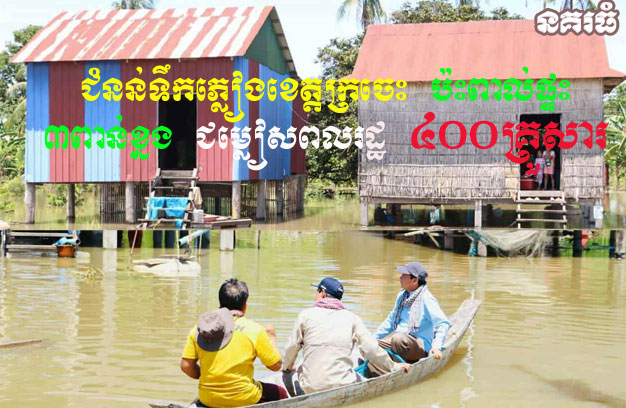 ជំនន់ទឹកភ្លៀងខេត្តក្រចេះ ប៉ះពាល់ផ្ទះ៣ពាន់ខ្នង ជម្លៀសពលរដ្ឋ ៤០០គ្រួសារ