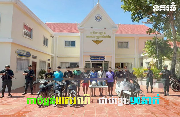 ខេត្តបន្ទាយមានជ័យ ៖ ក្មេងទំនើង ១០នាក់ ត្រូវបាននគរបាលឃាត់ខ្លួនជាបន្តបន្ទាប់ បញ្ជូនទៅតុលាការ ក្រោយពីធ្វើសកម្មភាពលួចនិងកាប់អ្នកស្រុក ប្លន់ម៉ូតូ ពេលរាត្រី នៅក្រុងប៉ោយប៉ែត។