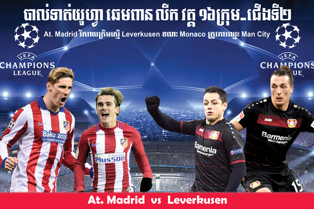 At. Madrid រីករាយត្រឹមស្មើ Leverkusen  ខណៈMonaco ត្រូវការឈ្នះ Man City  ថ្ងៃនេះ