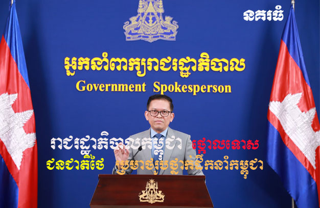 អ្នកនាំពាក្យរាជរដ្ឋាភិបាលកម្ពុជា សាង្កេតឃើញថា នៅប្រទេសថៃ អំពើអសីលធម៌ និងការប្រមាថគ្រប់បែបយ៉ាង ចំពោះថ្នាក់ដឹកនាំកម្ពុជា បានប្រព្រឹត្តទៅដោយចំហ ដោយគ្មានវិធានការអ្វីទាំងអស់។ អ្នកនាំពាក្យររាជរដ្ឋាភិបាលកម្ពុជា សូមសម្តែងការសោកស្តាយយ៉ាងខ្លាំងចំពោះការបណ្តែតបណ្តោយឱ្យអំពើប្រមាថបែបនេះ កើតមានដោយសេរីនៅក្នុងប្រទេសថៃ។