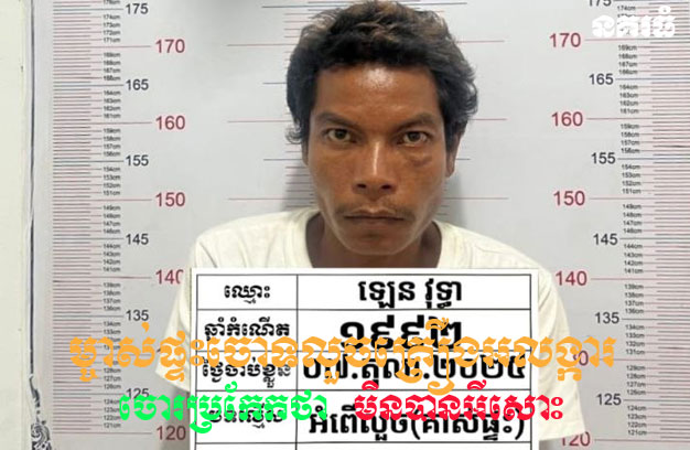 ខេត្តកណ្តាល ៖ ជនសង្ស័យម្នាក់ បានធ្វើសកម្មភាពលួចគាស់ផ្ទះ ១កន្លែង ខណៈដែលម្ចាស់មិននៅ លុះគាប់ជួនម្ចាស់ផ្ទះត្រឡប់មកវិញ ប្រទះឃើញផ្ទាល់ភ្នែក ទូរស័ព្ទប្តឹងសមត្ថកិច្ច ចុះឃាត់ខ្លួនជនសង្ស័យ វាយខ្នោះបាននៅក្នុងផ្ទះ និងអះអាងថា បានបាត់គ្រឿងអលង្ការមួយចំនួន តែជនសង្ស័យប្រកែកថា លួចមិនបានអ្វីសោះ ព្រោះម្ចាស់ផ្ទះមកទាន់។