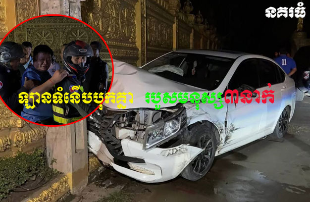 ភ្នំពេញ ៖ បុរសម្នាក់ បើករថយន្តម៉ាក RANGE ROVER ១គ្រឿង ក្នុងល្បឿនលឿន រួចរេចង្កូតទៅបុករថយន្ត ១គ្រឿងទៀត ម៉ាក SOUEAST HUAY ដែលជិះគ្នា៣នាក់ បណ្តាលឱ្យប៉ើងខ្ទាតទៅបុកផ្ទប់បង្គោលភ្លើង ១ដើម រងការខូចខាតយ៉ាងដំណំ ចំណែកអ្នកជិះក្នុងរថយន្ត ទាំង៣នាក់ រងរបួសធ្ងន់ និងត្រូវបានដឹកបញ្ជូនទៅសង្គ្រោះភ្លាមៗ។