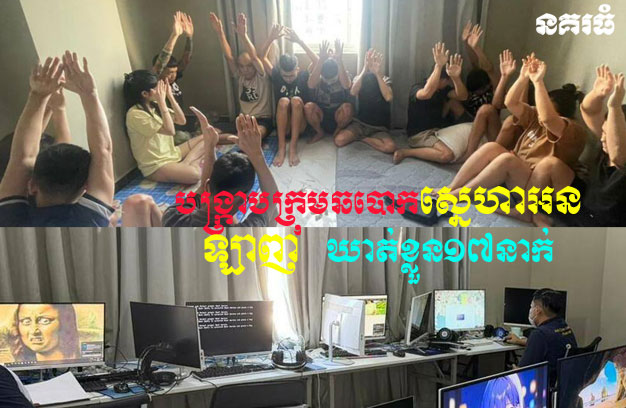 ភ្នំពេញ ៖ កម្លាំងគណៈបញ្ជាការឯកភាពរដ្ឋបាលខណ្ឌចម្ការមន ដោយមានការសម្របសម្រួលផ្លូវច្បាប់ ពីព្រះរាជអាជ្ញារង នៃអយ្យការអមសាលាដំបូងរាជធានីភ្នំពេញ បានចុះត្រួតពិនិត្យរដ្ឋបាល នៅទីតាំងអគារ ១កន្លែង ឈានដល់ឃាត់ខ្លួនជនបរទេសប្រុសស្រី សរុបចំនួន១៧នាក់ សង្ស័យពាក់ព័ន្ធករណីឆបោក ក្រោមរូបភាពបែបវិនិយោគ ការឆបោកតាមប្រព័ន្ធបច្ចេកវិទ្យា Online Scam និងឆបោកស្នេហា ទៅកាន់ប្រទេសផ្សេងៗ។