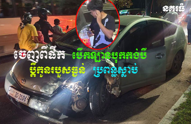ខេត្តសៀមរាប ៖ យុវជនម្នាក់ ទើបនឹងចេញពីផឹកស៊ីស្រវឹងធ្លាក់ភ្នែក បើករថយន្ត ១គ្រឿង ក្នុងល្បឿនលឿនដូចហោះ បោះពួយជ្រុលទៅបុកម៉ូតូកង់បី ១គ្រឿង ដែលបើកបរដោយបុរសជាប្តី រួមដំណើរដោយប្រពន្ធកូន យ៉ាងពេញទំហឹង ធ្វើឱ្យជនរងគ្រោះទាំង៣នាក់ ប៉ើងខ្ទាតចេញពីកង់បី និងបណ្តាលឱ្យស្ត្រីជាប្រពន្ធ ស្លាប់នៅនឹងកន្លែង។ ចំណែកបុរសជាប្តី និងកូន រងរបួសធ្ងន់ ត្រូវបានដឹកបញ្ជូនទៅសង្គ្រោះភ្លាមៗ។ រីឯអ្នកបើកបររថយន្តបង្កហេតុ ត្រូវបានសមត្ថកិច្ចឃាត់ខ្លួន នាំយកទៅចាត់ការតាមច្បាប់។