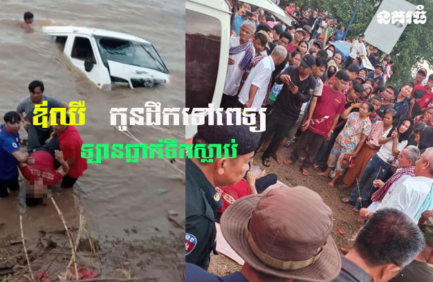 ខេត្តកំពង់ចាម ៖ បុរសវ័យចំណាស់ម្នាក់ បានកើតមានអាការមិនស្រួលខ្លួន ចេះតែអស់កម្លាំង និងមិនពិសា បាយ ប៉ុន្មានថ្ងៃមកហើយ ទើបកូនៗបានរួមគ្នាជួលរថយន្ត ១គ្រឿង ដឹកឪពុកទៅកាន់មន្ទីរពេទ្យ ឯរាជធានីភ្នំ ពេញ ដើម្បីពិនិត្យព្យាបាល ស្រាប់តែអកុសល ពេលធ្វើដំណើរមកដល់ពាក់កណ្តាលផ្លូវ រថយន្តដែលជិះគ្នាទាំងអស់៥នាក់ បានជួបគ្រោះថ្នាក់ ធ្លាក់ចូលទឹកទន្លេ បណ្តាលឱ្យស្លាប់ម្នាក់ និងបាត់ខ្លួន ២នាក់ សង្ស័យស្លាប់ (រួមទាំងអ្នកជំងឺ) ចំណែក២នាក់ទៀត បានរួចរស់ជីវិត។