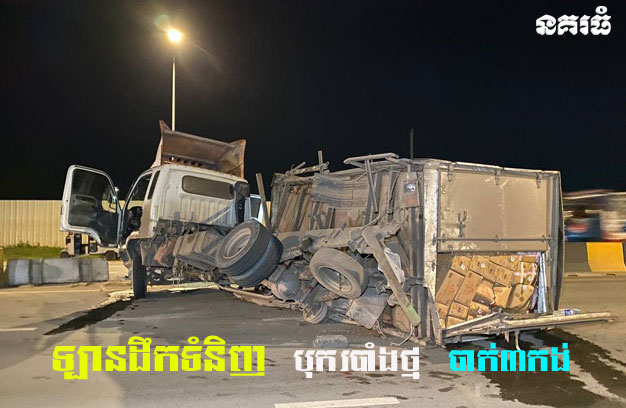 ភ្នំពេញ ៖ បុរសម្នាក់ បានបើករថយន្តដឹកទំនិញ ១គ្រឿង ក្នុងល្បឿនលឿន ខ្វះការប្រុងប្រយ័ត្ន រេចង្កូតទៅបុក របាំងថ្មពុះចែកទ្រូងផ្លូវ ពេញទំហឹង បណ្តាលឱ្យបាក់ ចំនួន៣កង់ ខ្ទាតចេញពីកន្លែងដើម ចំណែករថយន្តបង្កហេតុ ខូចខាតផ្នែកខាងមុខយ៉ាងធ្ងន់។