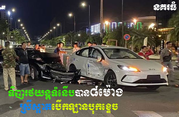 ភ្នំពេញ ៖ បុរសម្នាក់ ទើបនឹងទិញរថយន្តទំនើប ម៉ាក BYD  បានត្រឹម៨ម៉ោង មិនទាន់បានបំពាក់ស្លាកលេខផង ស្រាប់តែបើកបរមកដល់ចំណុចផ្លូវបំបែកជាបួន ត្រូវបាននារីស្រស់ស្អាតម្នាក់ បើករថយន្ដ មួយគ្រឿង ម៉ាក ESCALET  បុកខ្ទេច មួយគ្រឿង ។