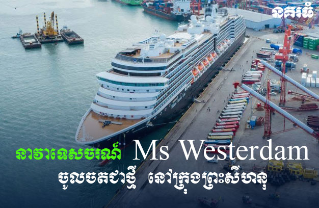 ខេត្តព្រះសីហនុ ៖ នាវាទេសចរណ៍ MS Westerdam នៅវេលាម៉ោង ៦និង២០នាទីព្រឹក ថ្ងៃទី១៨ ខែវិច្ឆិកា ឆ្នាំ២០២៥ បានចូលចតនៅកំពង់ផែស្វយ័តក្រុងព្រះសីហនុ រយៈពេល ១ថ្ងៃ នាំភ្ញៀវទេសចរណ៍ចម្រុះជាតិសាសន៍ ជិត២០០នាក់ មកទស្សនាខេត្តព្រះសីហនុ ជាថ្មី ។